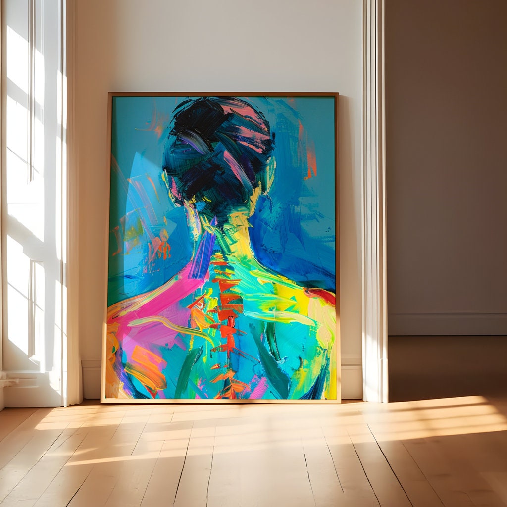 Explore the captivating mystery of a story untold with βThe Turn,β an expressive painting that finds a world of meaning in a simple, elegant gesture. This artwork captures a woman with her back turned, her form rendered in vibrant colors and bold, impasto brushstrokes against a serene blue background. Praised by our collectors for its "visually striking, dynamic composition" and its "touch of elegant, artistic flair," this piece is a sophisticated and thought-provoking statement for any modern art lover.