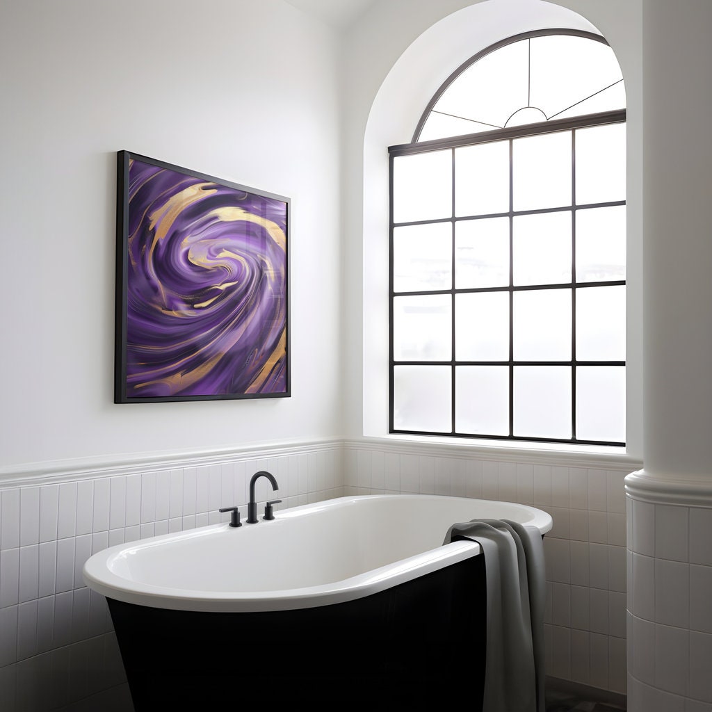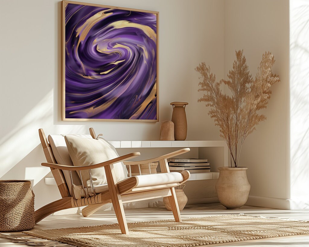 A Vortex of Sophistication: A swirling vortex of purple and gold, rendered with smooth, marbled patterns, creates a composition that admirers call "a captivating and elegant dance of color."