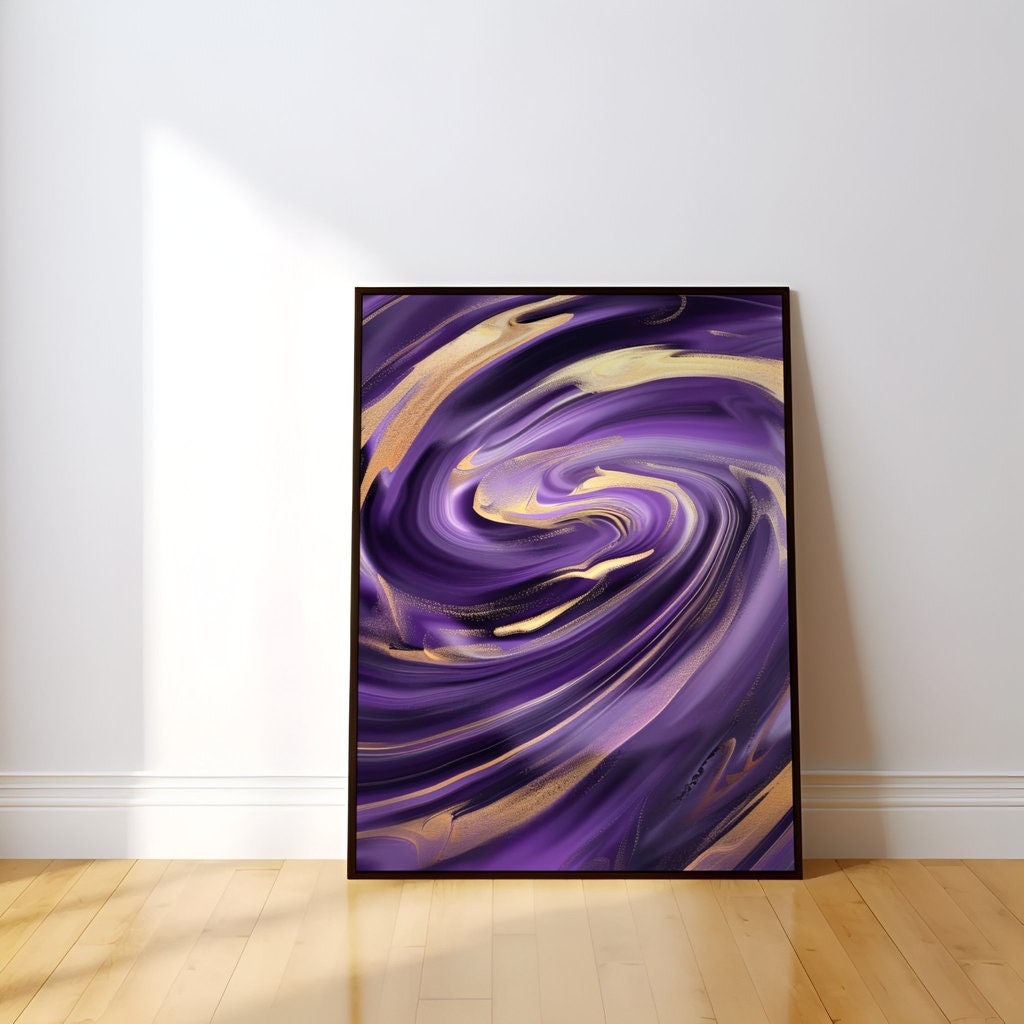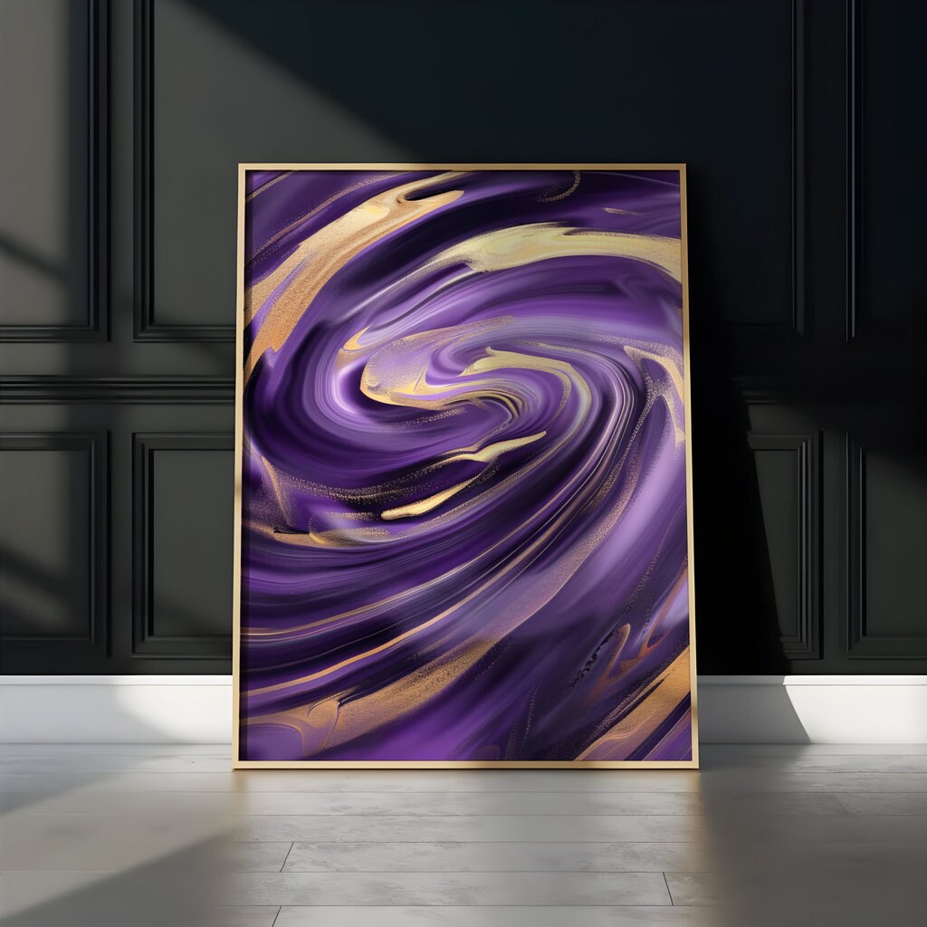 Elegance in Motion: The harmonious blend of purple and gold, combined with the fluid, marbled textures, evokes a sense of opulence and a deep, captivating sense of movement.