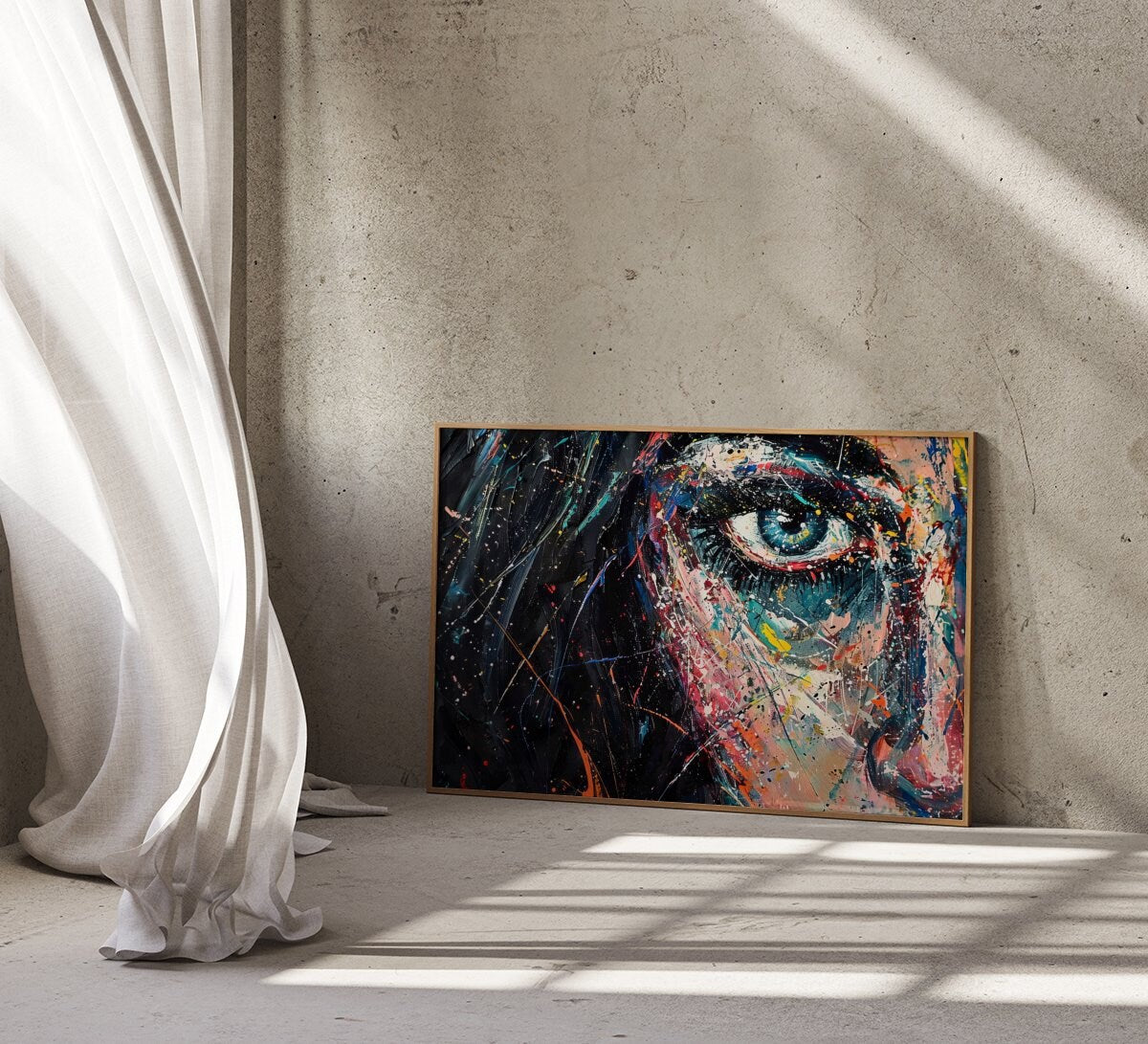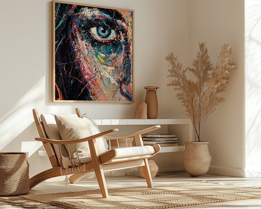 • A Living Gaze: Your artwork includes a unique QR code. When scanned, the eye may slowly blink or the colors may seem to swirl with emotion, bringing this powerful, interactive portrait to life.