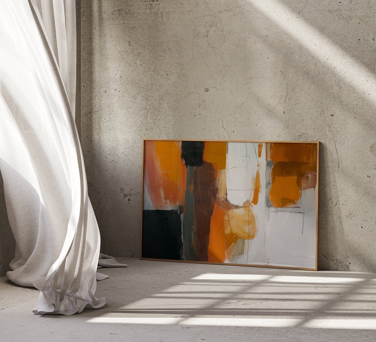 • A Harmony of Warmth and Structure: Vibrant orange hues, balanced with calming brown and beige tones, create a composition that admirers call "a visually striking and perfectly balanced work of art."