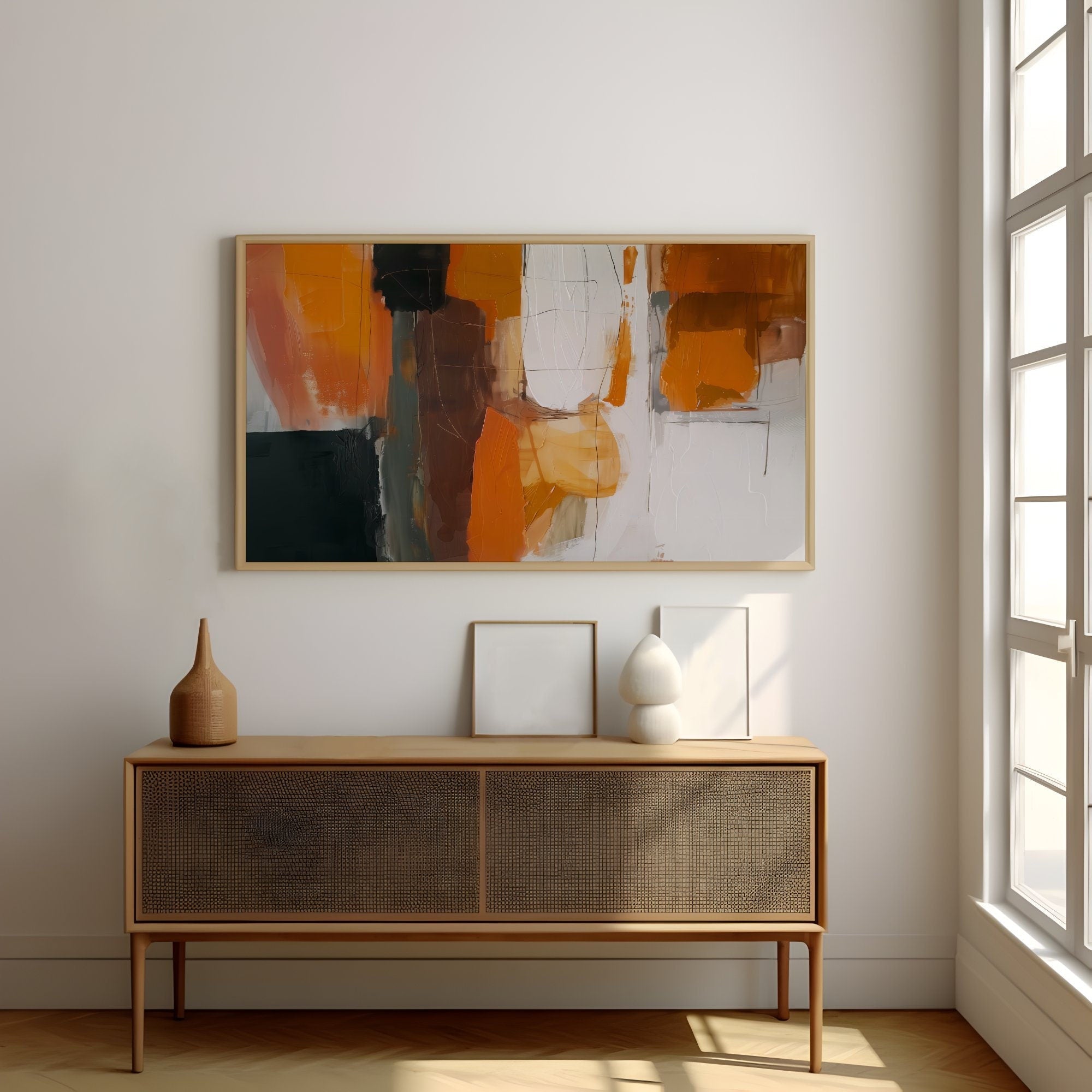 Gather 'round the warmth of pure, modern design with β€˜The Hearth,’ a captivating artwork that combines vibrant orange hues with the calming, grounding presence of brown and beige tones. This minimalist abstract piece is a masterful study in balance, creating a visually striking composition that is both energetic and deeply serene. Praised by our collectors for its "touch of sophistication and warmth" and its "seamless, contemporary style," this artwork is a perfect way to elevate any living or office space.