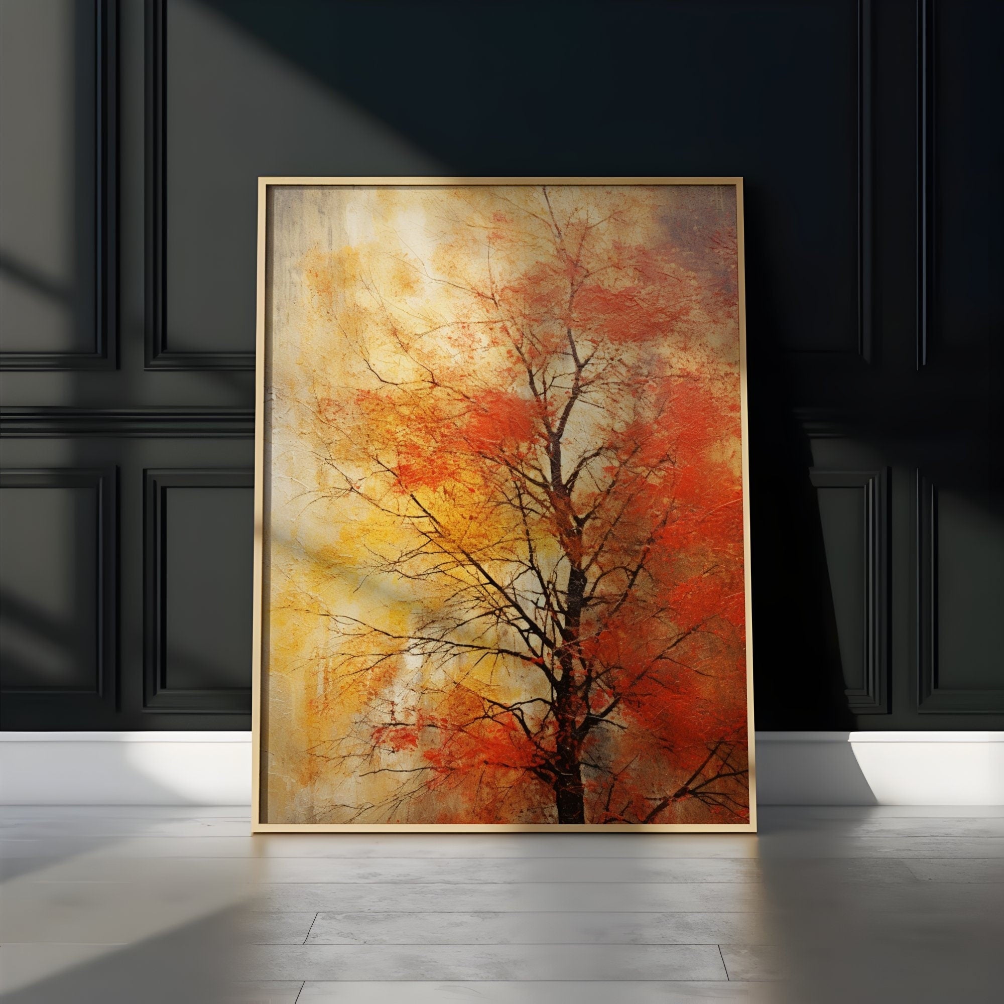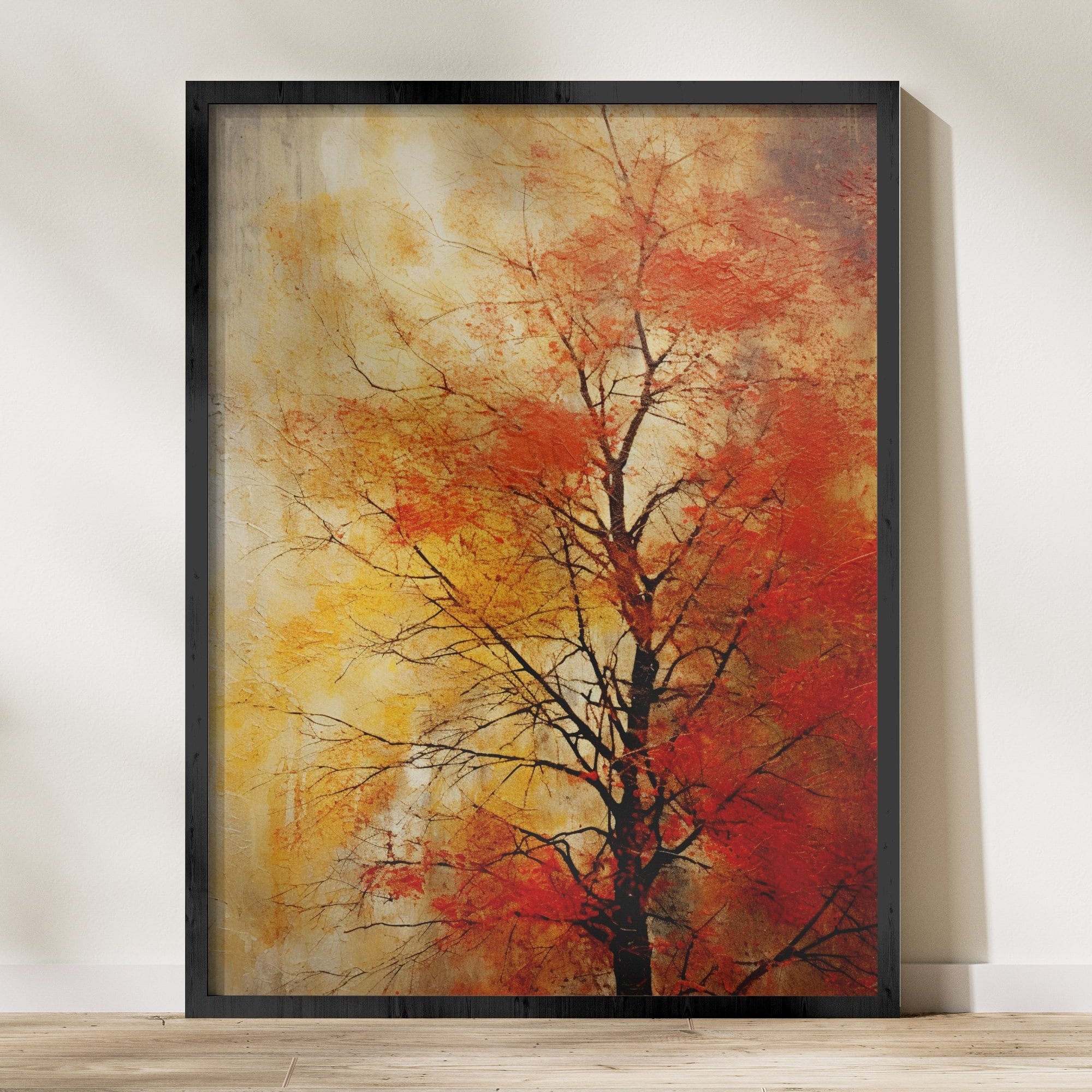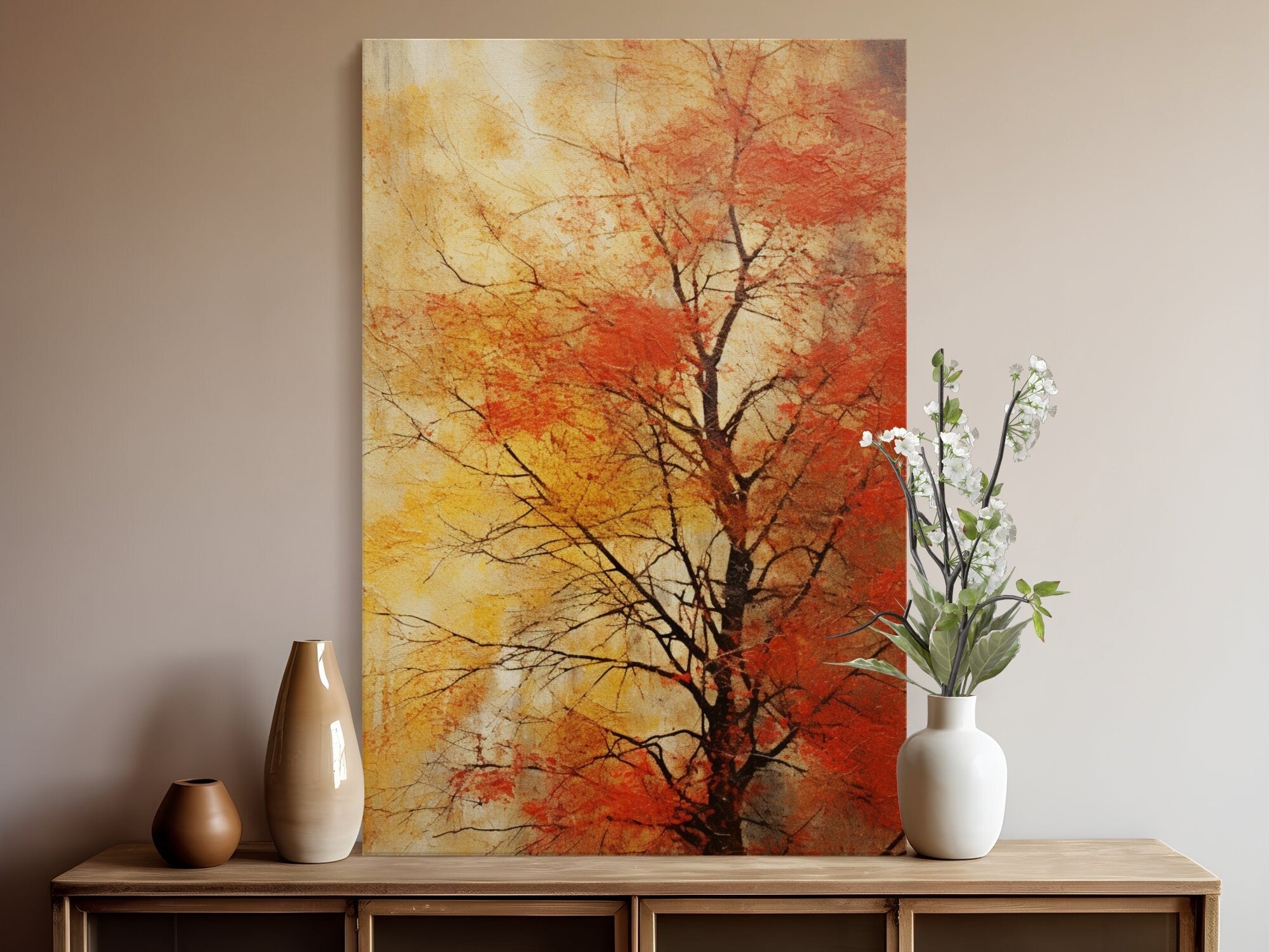 The Autumn Soul: Abstract Impressionist Tree in Red & Gold | Temporal & Vibrant Wall Art