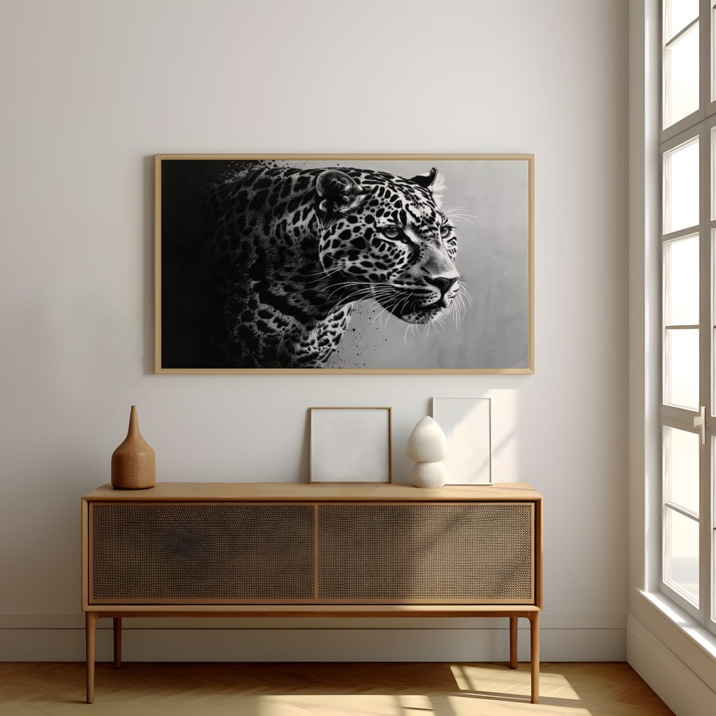A Living Presence: Your artwork includes a unique QR code. When scanned, the leopard's eyes may seem to track you or the shadows may deepen, bringing this powerful, interactive portrait to life.
