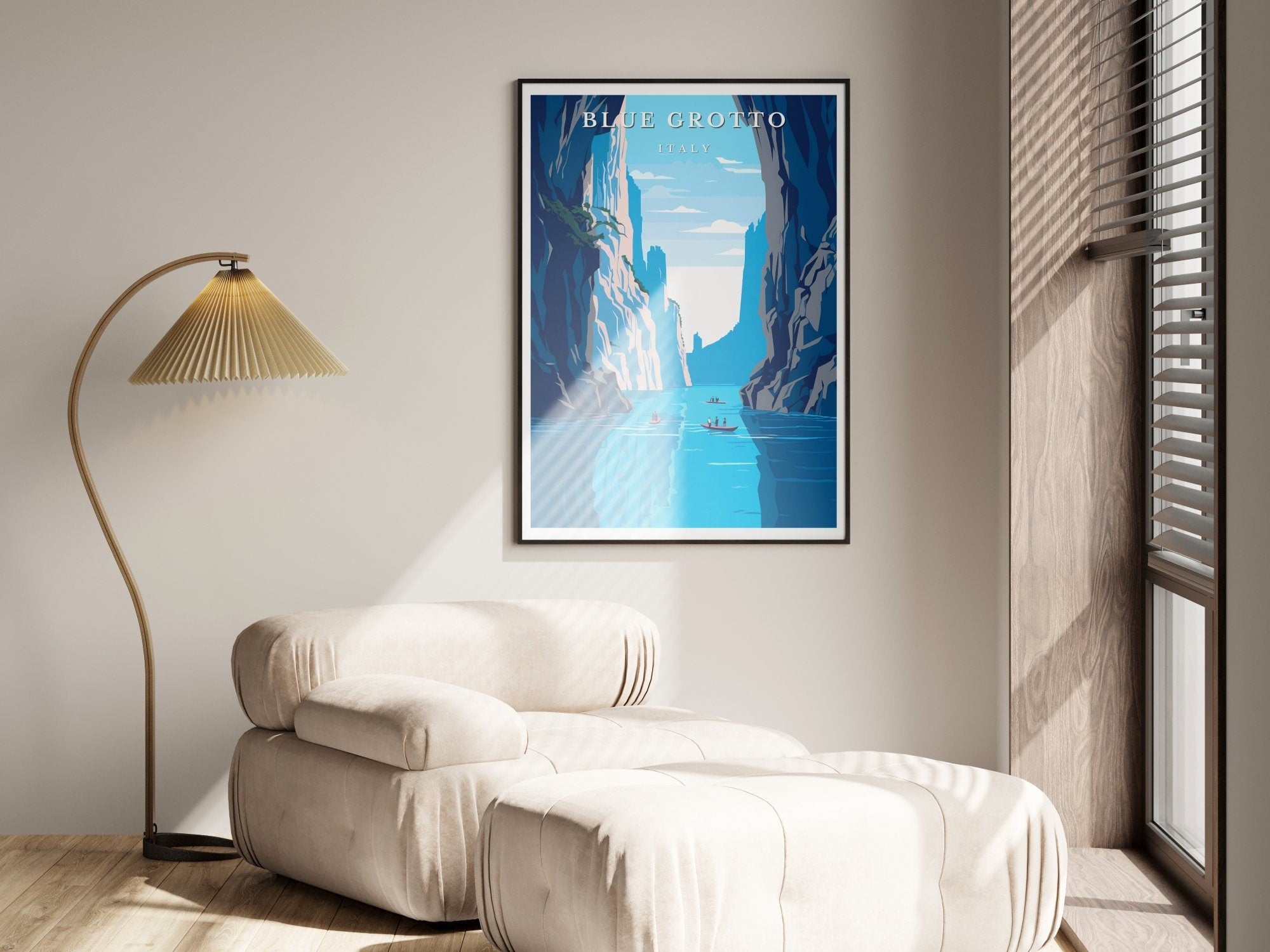 Embark on a journey to a world of pure, liquid light with โ€˜The Blue Grotto,โ€™ a captivating art print that immerses you in the mesmerizing beauty of Capri's most famous coastal wonder. This artwork captures the magical ambiance of the cave, where crystal-clear water is illuminated by an ethereal, radiant blue glow. Praised by travel lovers for its "breathtaking beauty" and "sense of serene wonder," this piece is a perfect window to one of the most enchanting places on Earth.
