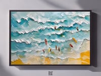 • A Vision of Pure Energy: A minimalist abstract style captures the dynamic movement of the ocean and the joy of beach activities, creating a composition that admirers call "the essence of summer excitement."