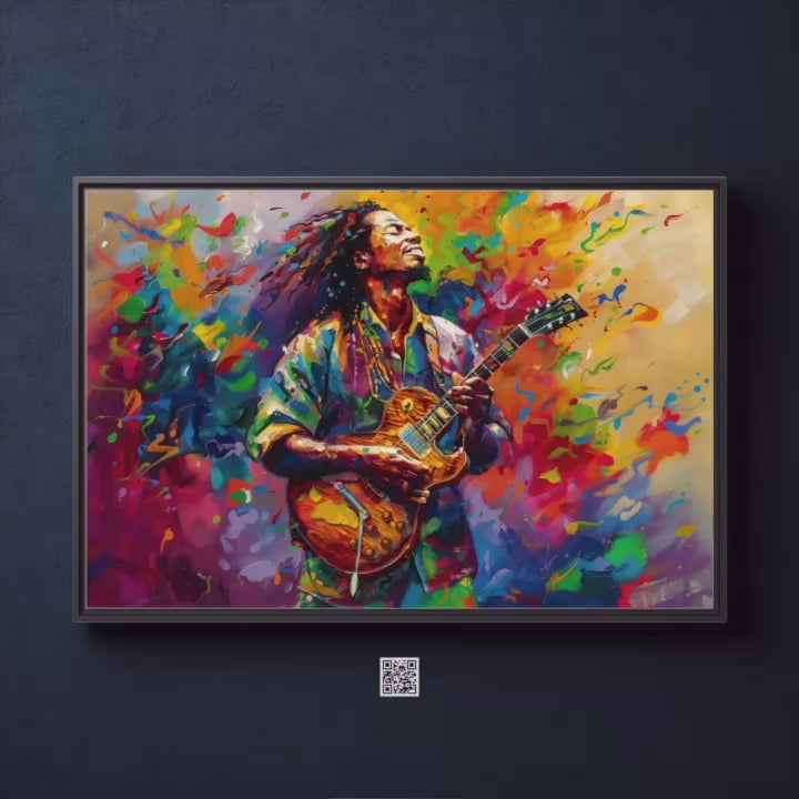 ✔️ The Living Riff: Your artwork includes a unique QR code. When scanned, the abstract background may swirl or the guitarist's hands move, bringing this dynamic, interactive rock solo to life.