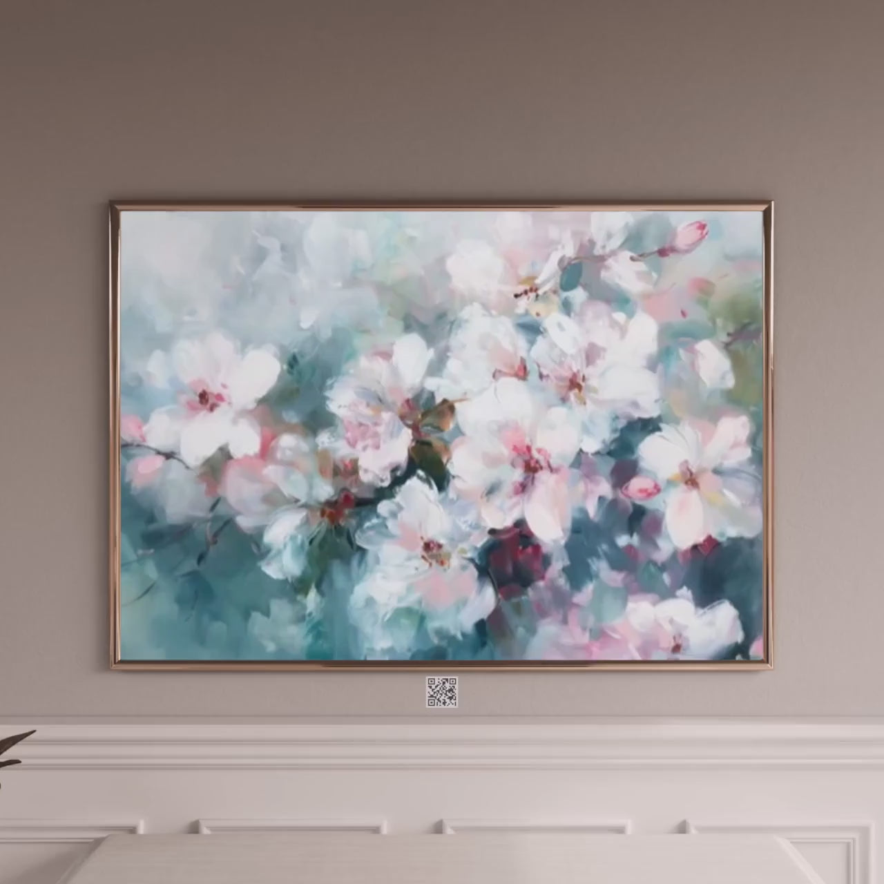 A Living Bloom: Your artwork includes a unique QR code. When scanned, a petal may gently drift from a branch or a new blossom may seem to open, bringing this beautiful, interactive moment of spring to life.
