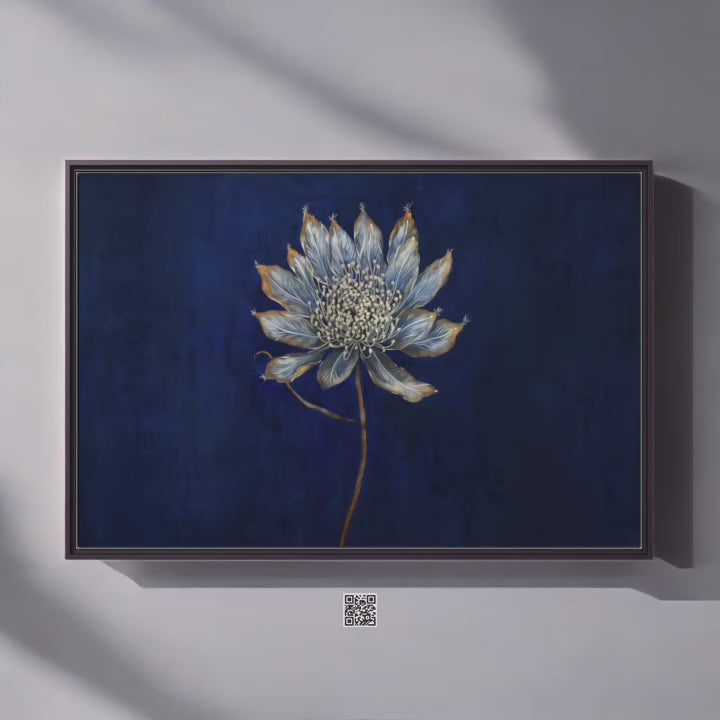 ✔️ A Living Sculpture: Your artwork includes a unique QR code. When scanned, the petals may seem to gently unfurl or a soft light may drift across the flower, bringing this serene, interactive botanical sculpture to life.