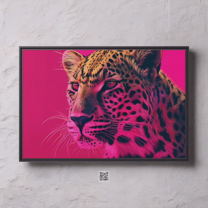 ✔️ A Gaze of Regal Power: A majestic leopard, rendered in vibrant color against a dramatic pink background, creates a dynamic composition that admirers call "unforgettable and fiercely elegant."