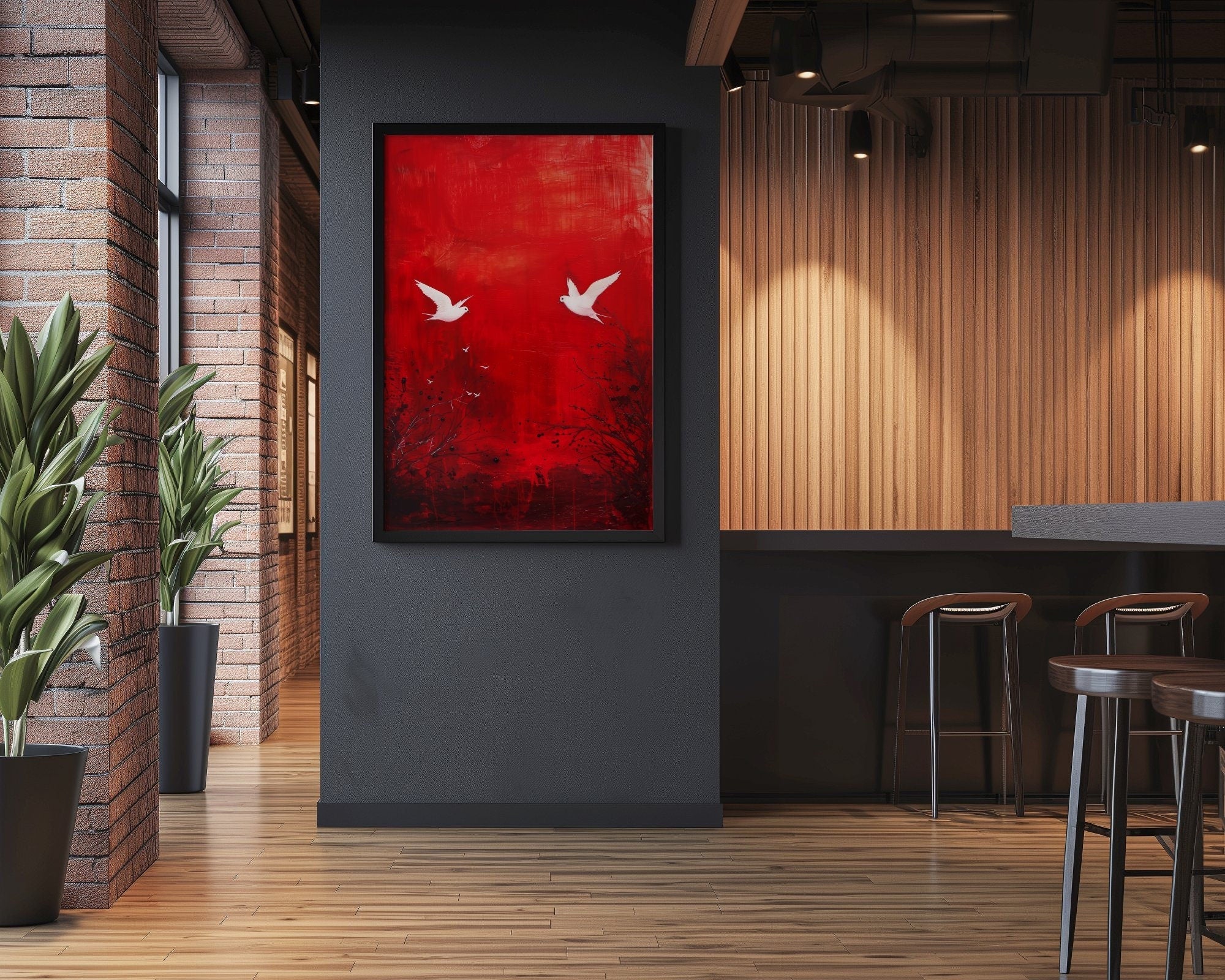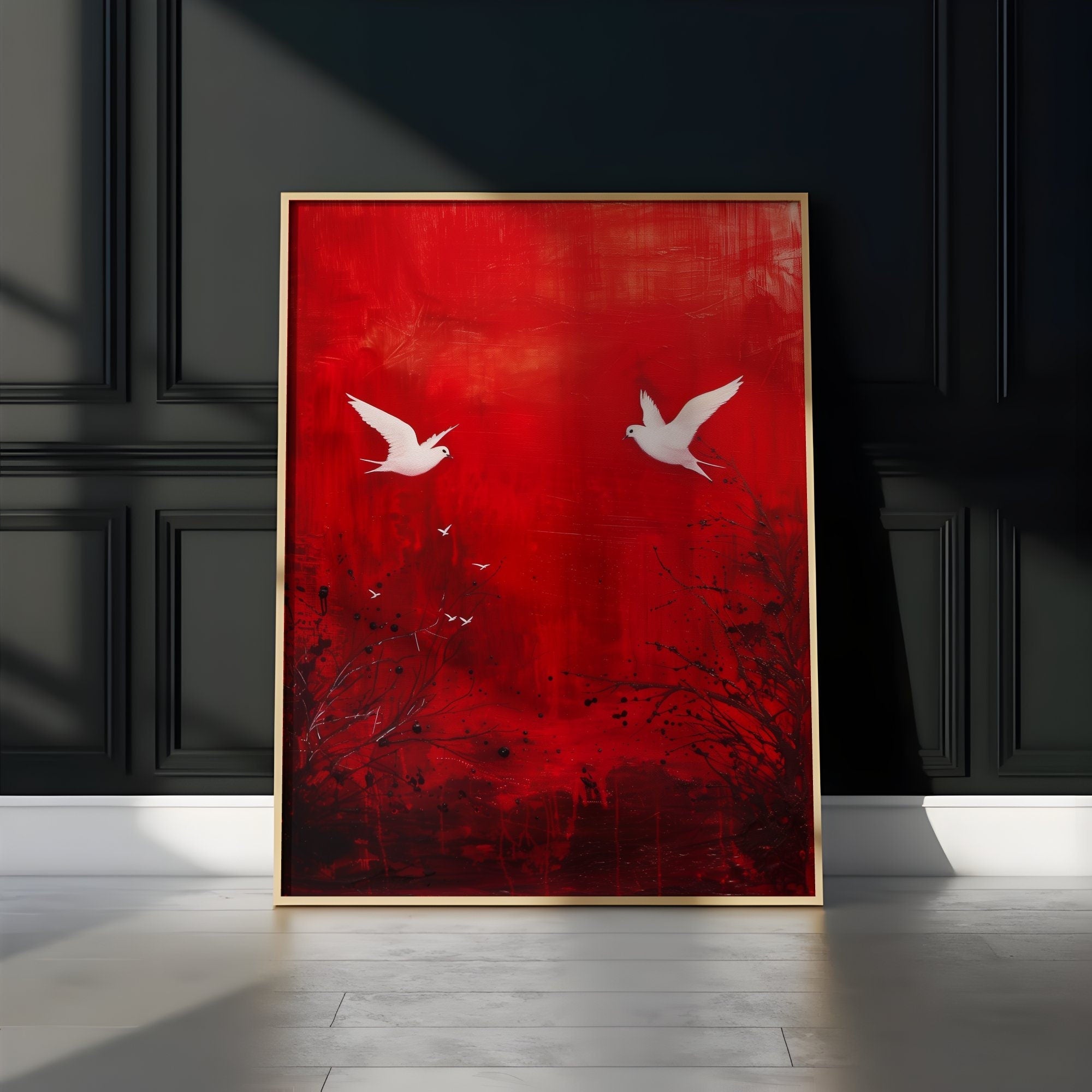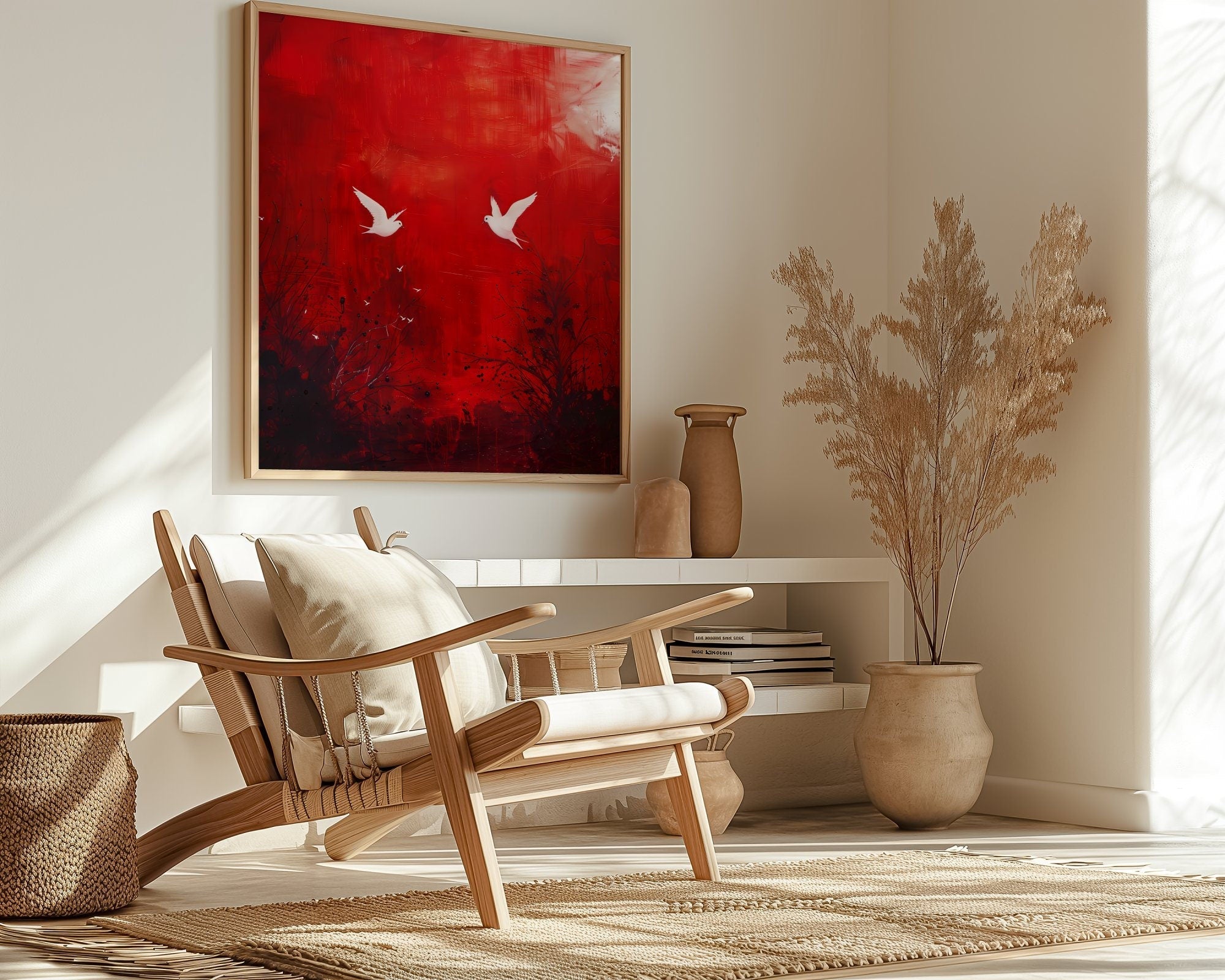 The Primal Sky: Surrealist Crimson Red Abstract Art | Moody & Emotional Wall Decor