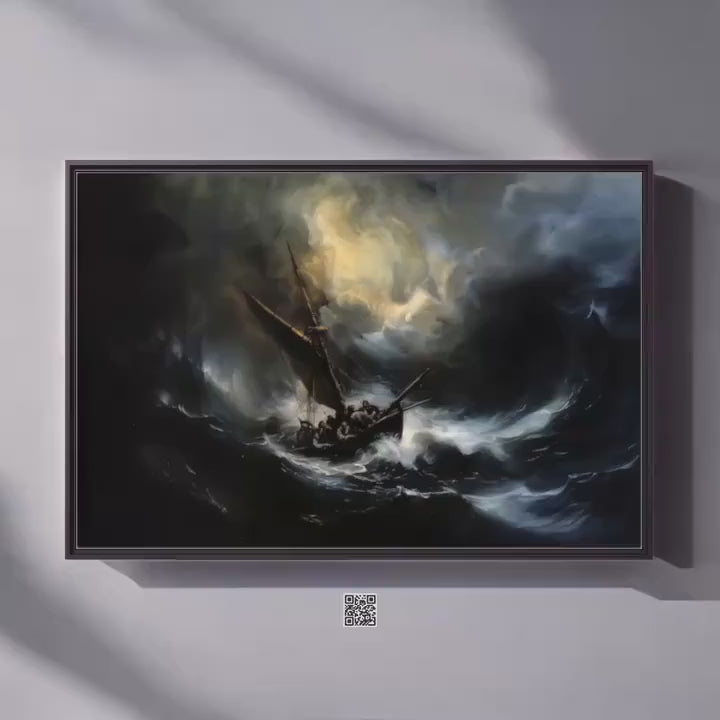 ✔️ A Living Tempest: Your artwork includes a unique QR code. When scanned, lightning may flash and the waves crash with a subtle, living motion, bringing this powerful, interactive maritime scene to life.