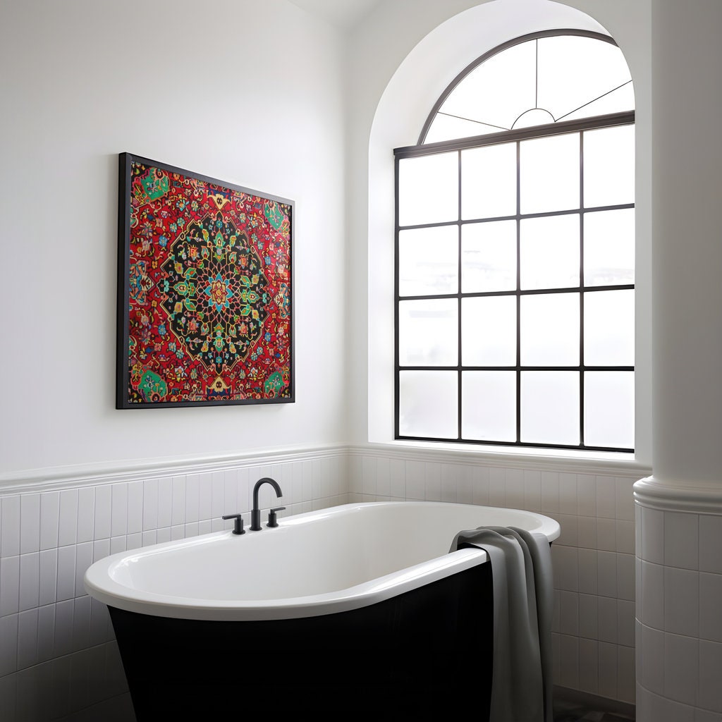 • Creates a Contained Sanctuary: The design principles of a Persian rug are known to create a sense of order, harmony, and psychological comfort.