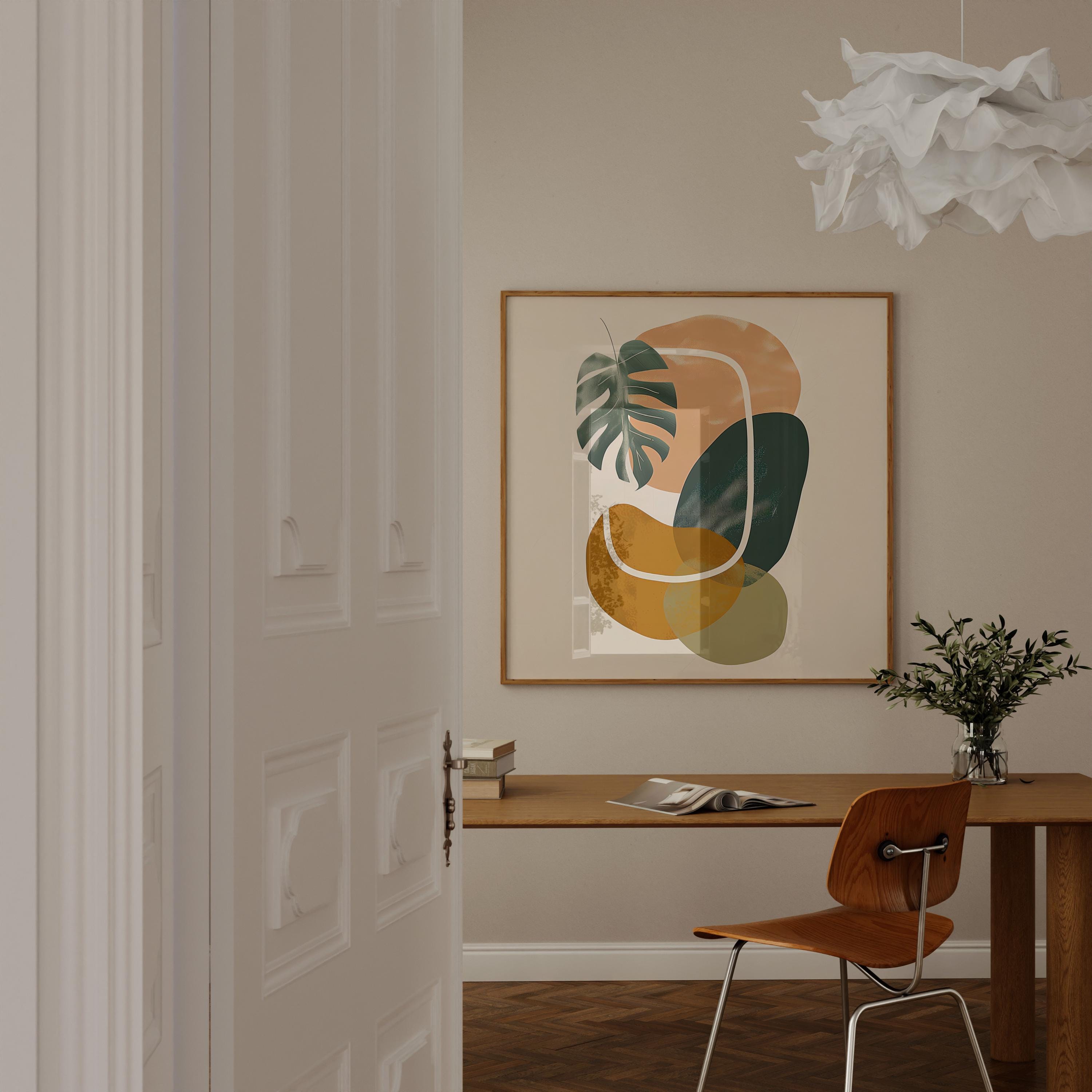 Find your rhythm in a lush paradise of form and color with โTropical Rhythms,โ a stunning mid-century modern artwork that celebrates the abstract beauty of nature. This piece captures the essence of tropical leaves through a sophisticated blend of organic and geometric shapes, creating a harmonious and vibrant composition. Praised by our collectors for its "warm, tranquil energy" and "playful, stylish vibe," this artwork brings a touch of the tropics and the spirit of boho decor into the modern home.