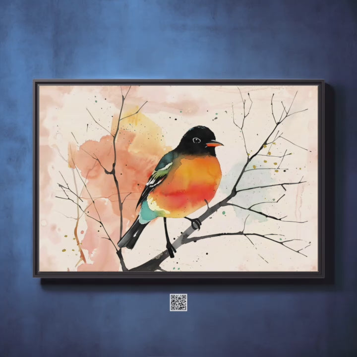 • A Living Melody: Your artwork includes a unique QR code. When scanned, you might see the background colors gently swirl or hear the faint echo of a bird's song, bringing this vibrant, interactive moment to life.