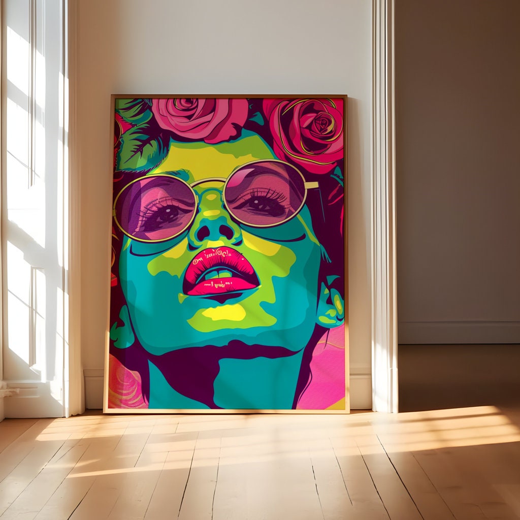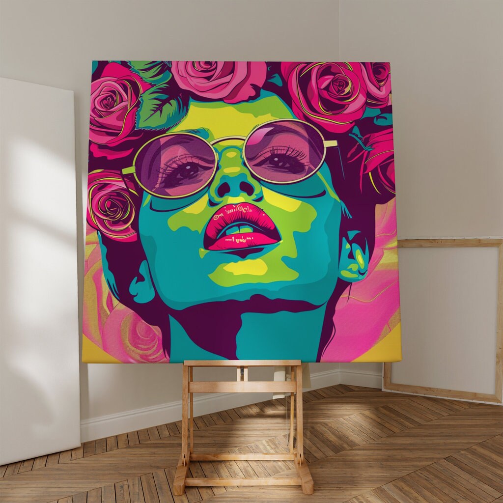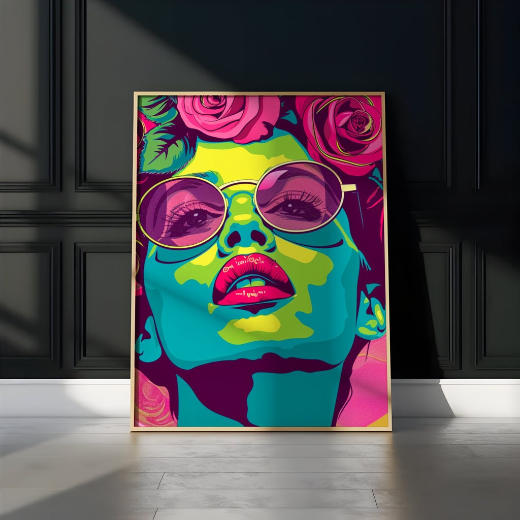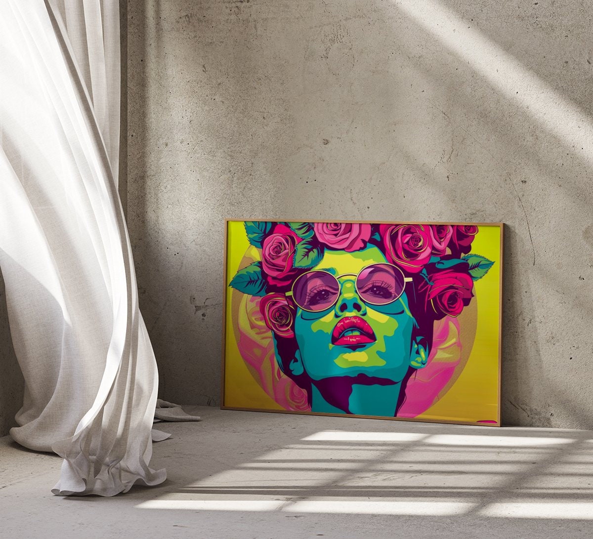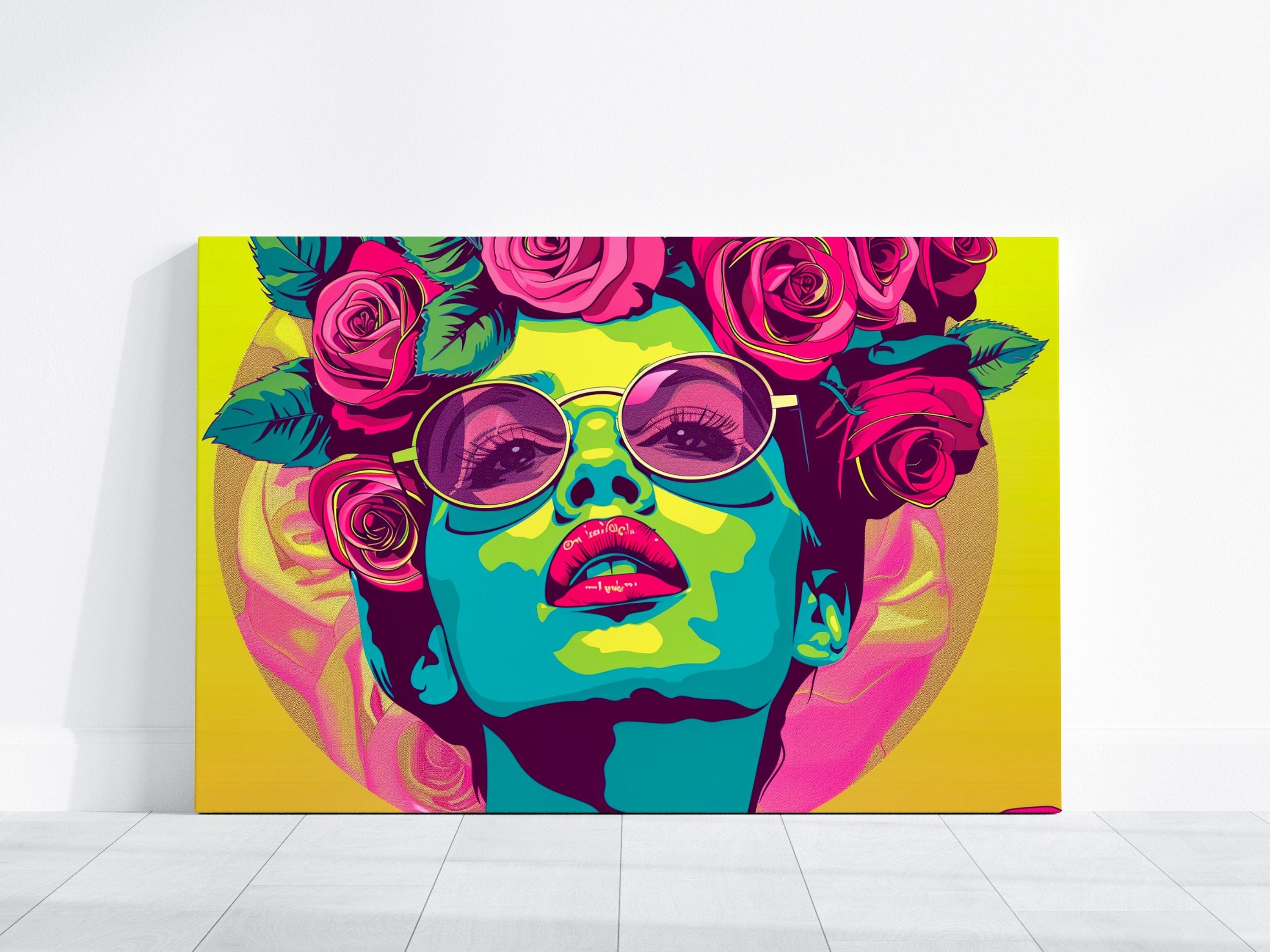 Crown yourself the queen of your own vibrant world with β€˜The Pop Queen,’ a striking pop art piece that celebrates the power of bold, unapologetic self-expression. This artwork features a stylish and confident woman, her skin a brilliant green and her lips a shocking pink, crowned with a halo of colorful roses. Praised by our collectors for its "energetic, contemporary flair" and "unforgettable, powerful style," this piece is a perfect statement for anyone who isn't afraid to stand out and be seen.