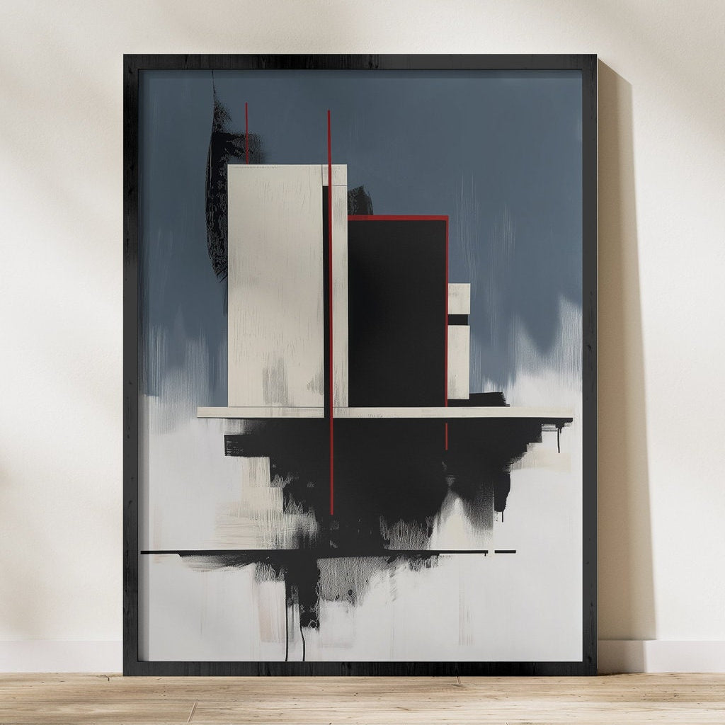 The Blueprint: Modern Minimalist Architectural Art | Blue, White & Red Wall Decor