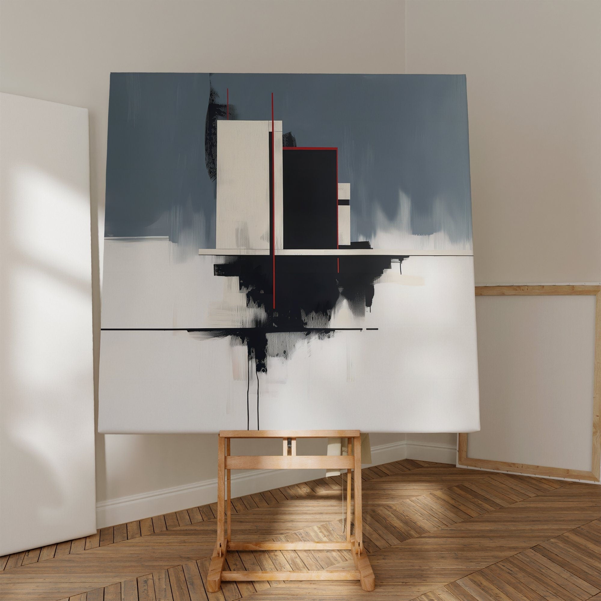Discover the serene beauty of a world in perfect balance with β€˜The Blueprint,’ a sophisticated artwork that captures the essence of modern architectural design. This minimalist piece, created with a harmonious palette of blue, white, and red, is a celebration of balance, creativity, and intellectual elegance. Praised by our collectors for its "sense of contemporary flair" and its "bold yet refined aesthetic," this artwork is a perfect touch of sophistication for any modern space.