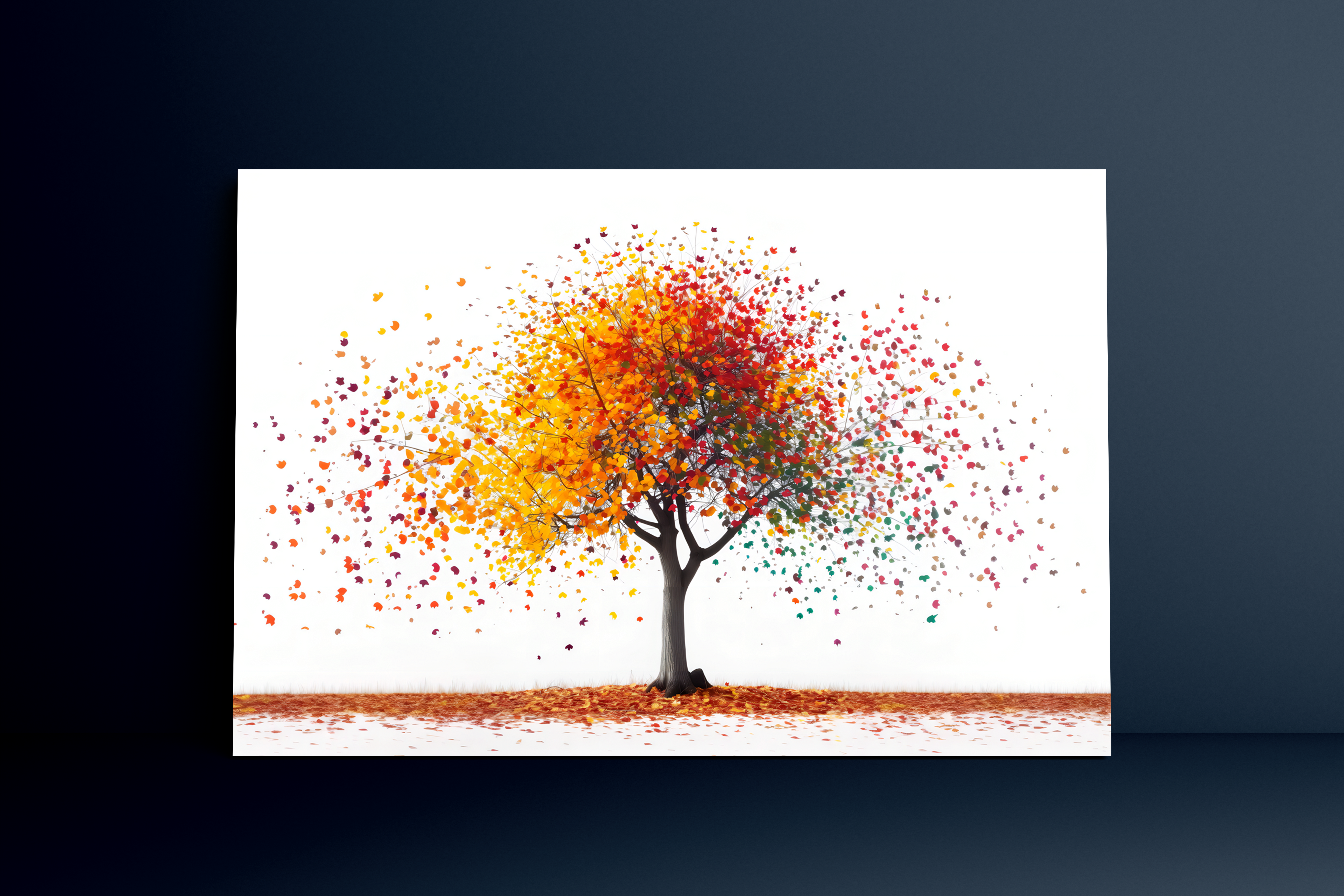 Beauty in Every Leaf: The contrast between the bold colors of the leaves and the purity of the white background creates a sense of balance and harmony, drawing the eye to the intricate details of each leaf.