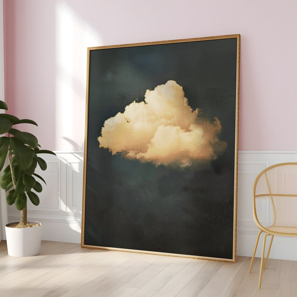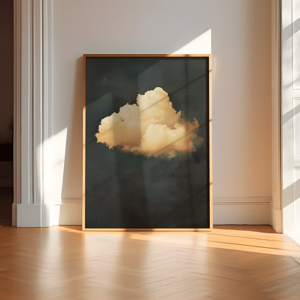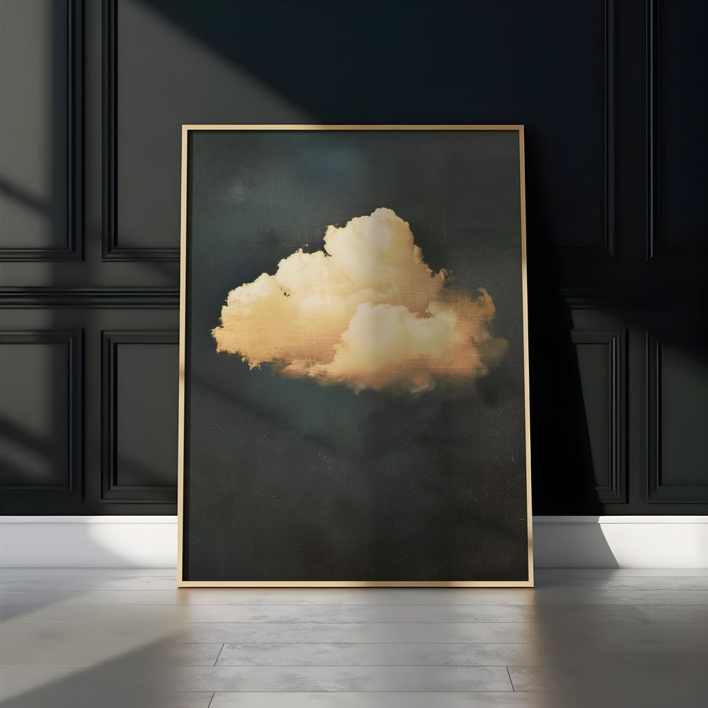 The Solitary Cloud: Vintage Moody Sky Art | Minimalist & Contemplative Wall Decor