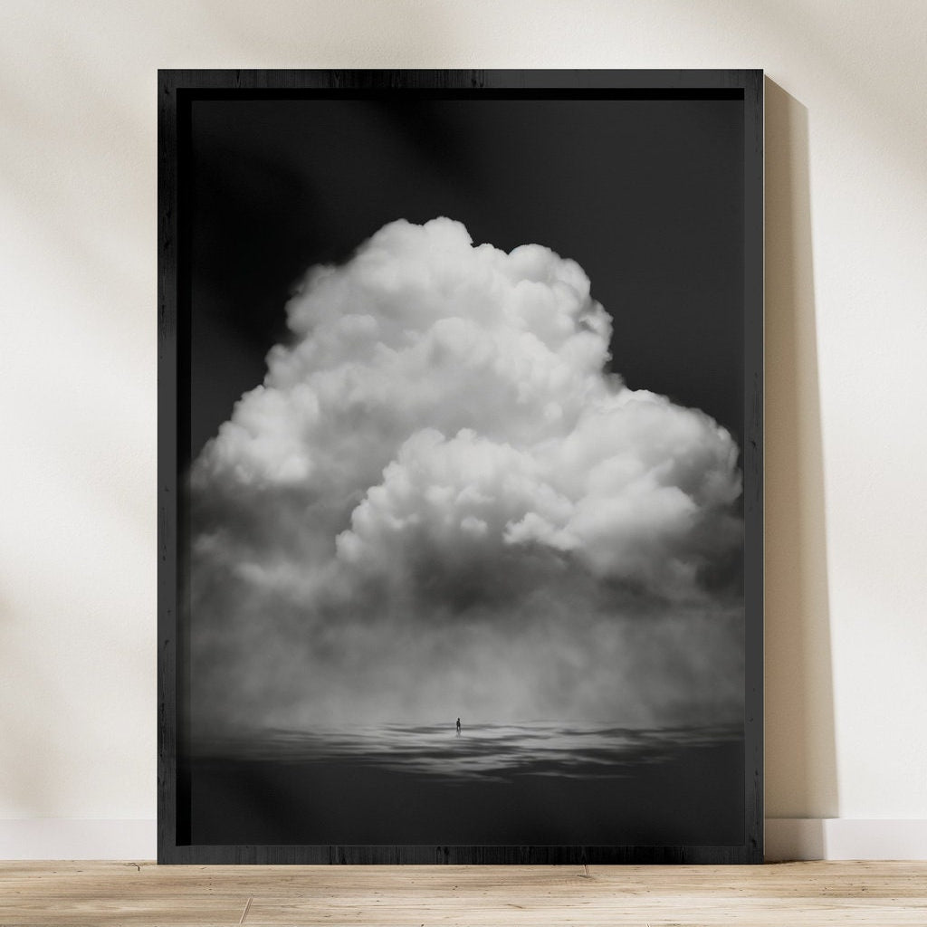 Eternal Shadows: Surreal Black & White Cloudscape | Moody & Minimalist Wall Art