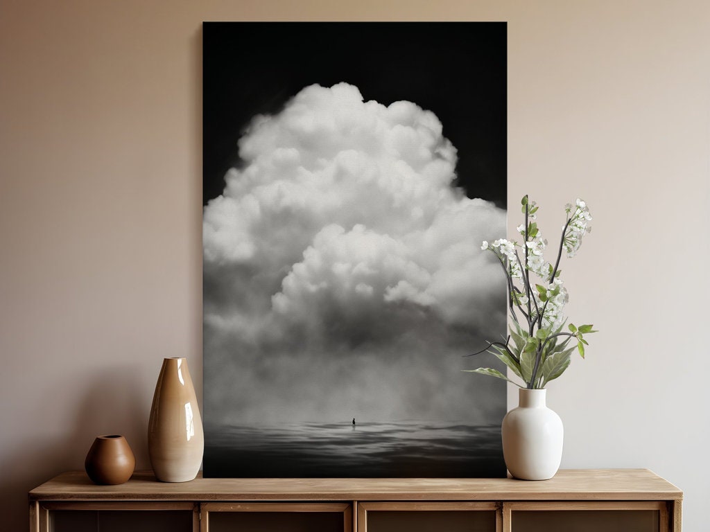 • Artistry in Shadow & Light: The bold use of monochromatic tones and intricate cloud formations creates a powerful visual experience that transcends the ordinary.