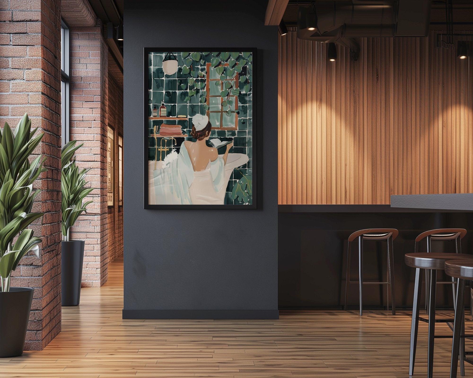 The Sanctuary: Watercolor Woman in Bath Art | Serene & Elegant Bathroom Wall Decor
