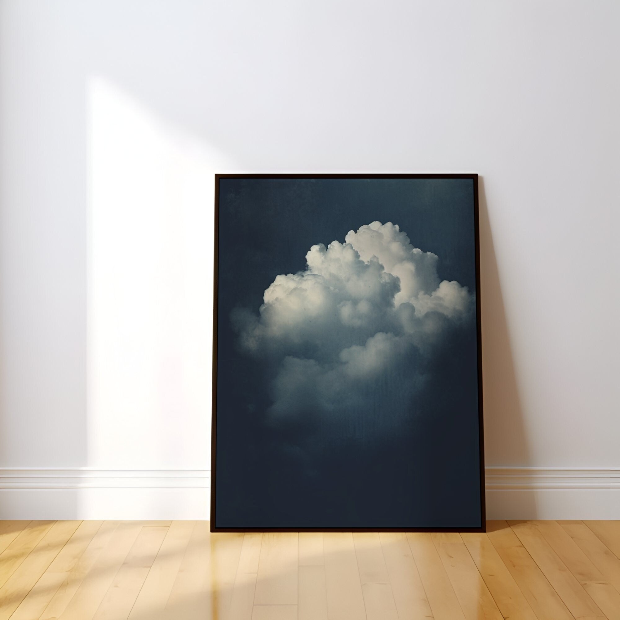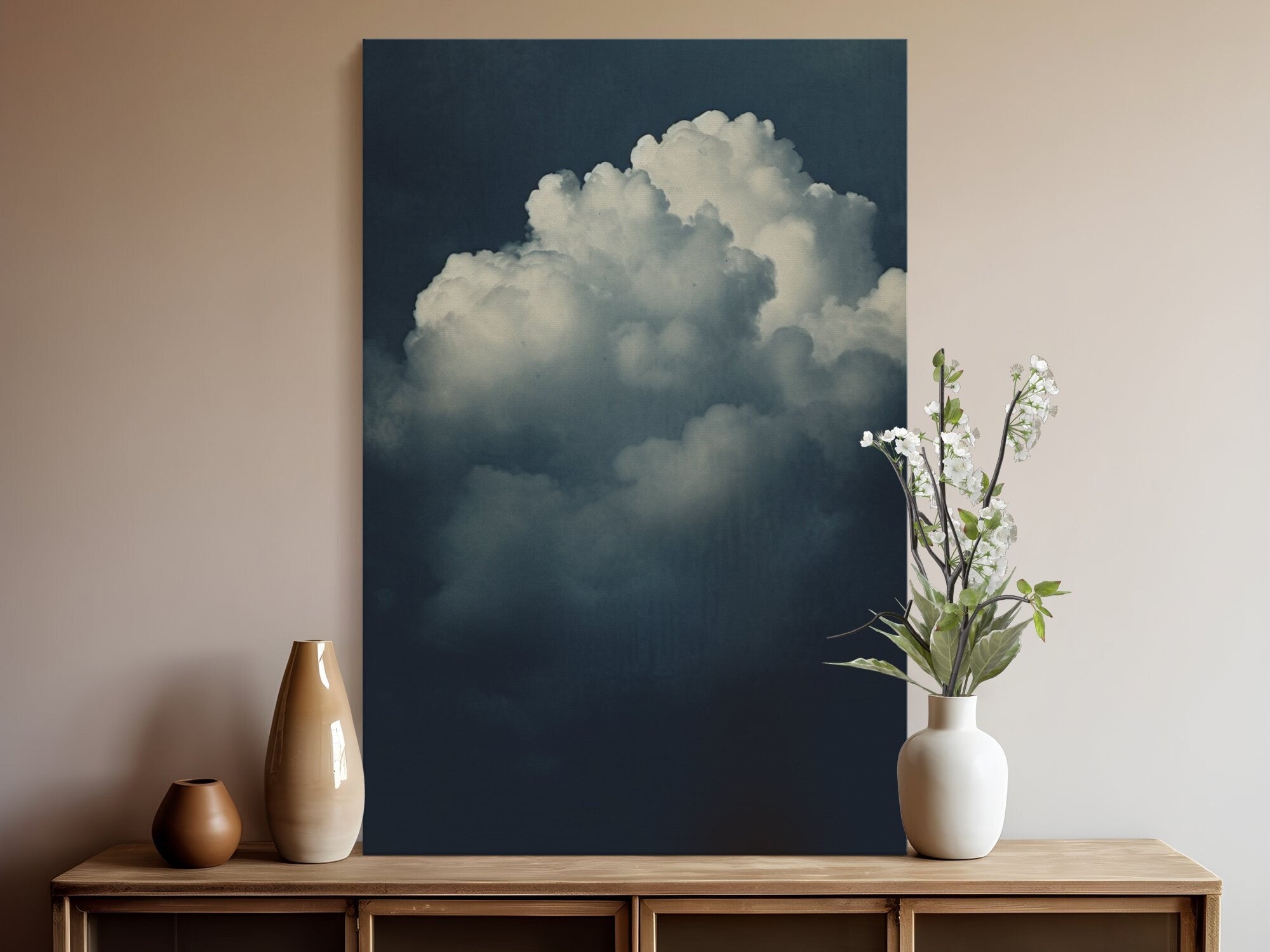 Timeless Charm, Modern Appeal: The unembellished portrayal of the clouds against a dark backdrop creates a sophisticated and contemplative atmosphere.