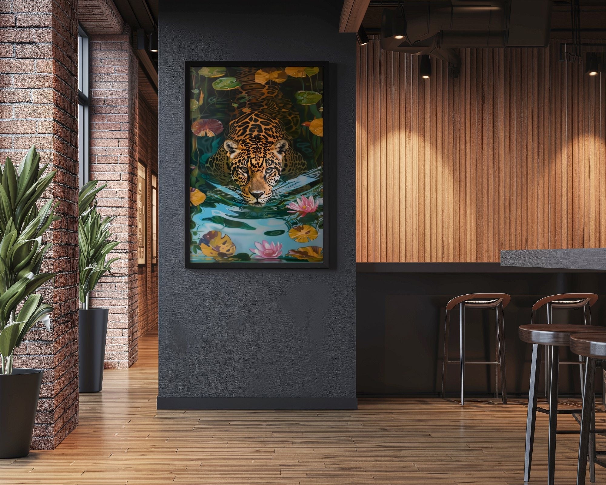Dive into a world of untamed, luxurious beauty with βJungle Pool,β a vibrant and eye-catching artwork that embodies the very essence of maximalist art. This trendy design features a stunning depiction of a leopard and a jaguar, two powerful symbols of instinct and grace, in their natural aquatic habitat. Praised by our collectors for its "bold, dynamic decor" and its "exotic, powerful flair," this piece is a standout addition for any space that celebrates the strength and beauty of these magnificent creatures.