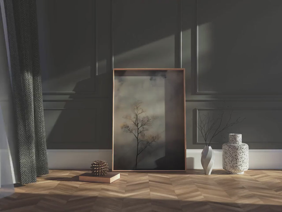 • A Living Stillness: Your artwork includes a unique QR code. When scanned, the leaves of the tree may gently rustle in the wind or the clouds may slowly drift by, bringing this serene, interactive moment to life.
