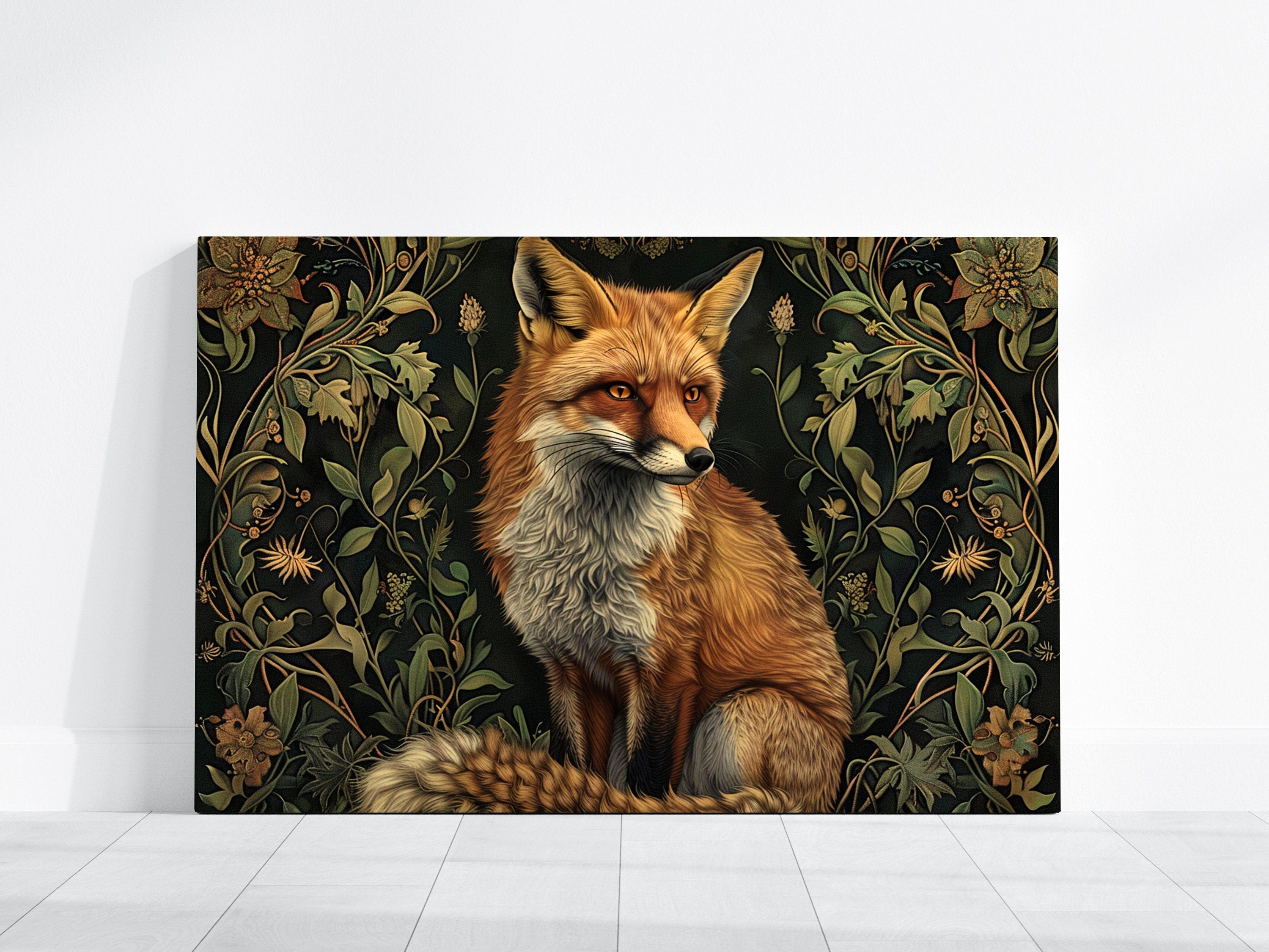 A Living Fable: Your artwork includes a unique QR code. When scanned, the fox's amber eyes may seem to glint with intelligence or the Art Nouveau foliage may gently sway, bringing this elegant, interactive story to life.