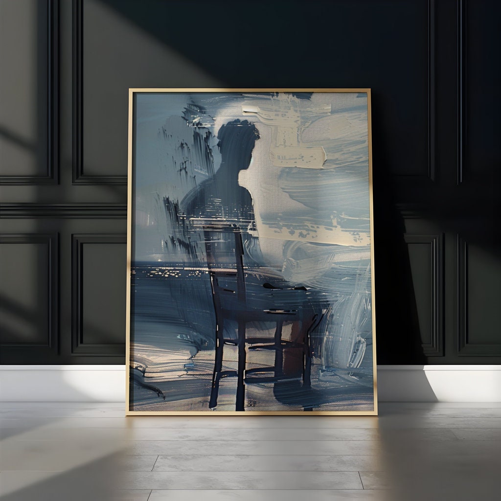 The lone figure before the ocean is a timeless and powerful symbol of the human condition. It is a portrait of the soul, sitting before the vast, mysterious, and sometimes overwhelming expanse of its own unconscious. The melancholy is not a weakness, but a strengthβ€”the courage to sit with one's own feelings, to be present with the great, beautiful emptiness, and to find a strange and profound peace in that solitude. This artwork is a tribute to the quiet dignity of introspection and the deep, emotional currents that make us human.