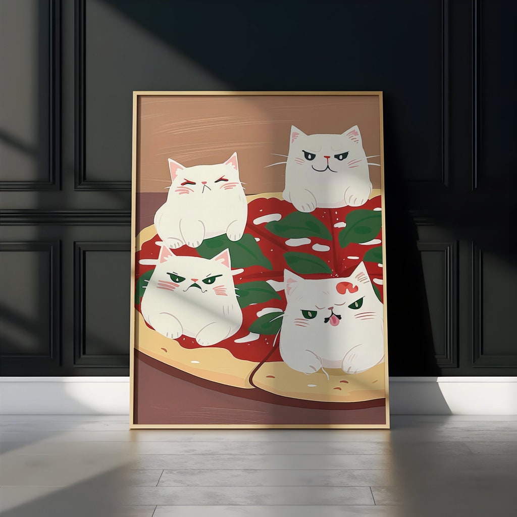 Pizza Purradise: Whimsical Cartoon Cats on Pizza Art | Fun & Playful Kitchen Decor