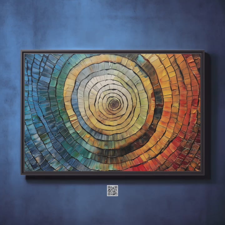Trace the beautiful story of a life in full color with ‘Life Rings,’ a vibrant abstract mosaic that captures the energy of growth and time. This artwork uses mesmerizing concentric circles of color, reminiscent of the rings of a great tree, transitioning from cool blues to warm reds. Praised by our collectors for its "dynamic harmony" and "captivating detail," this piece is a stunning celebration of the journeys that shape us.