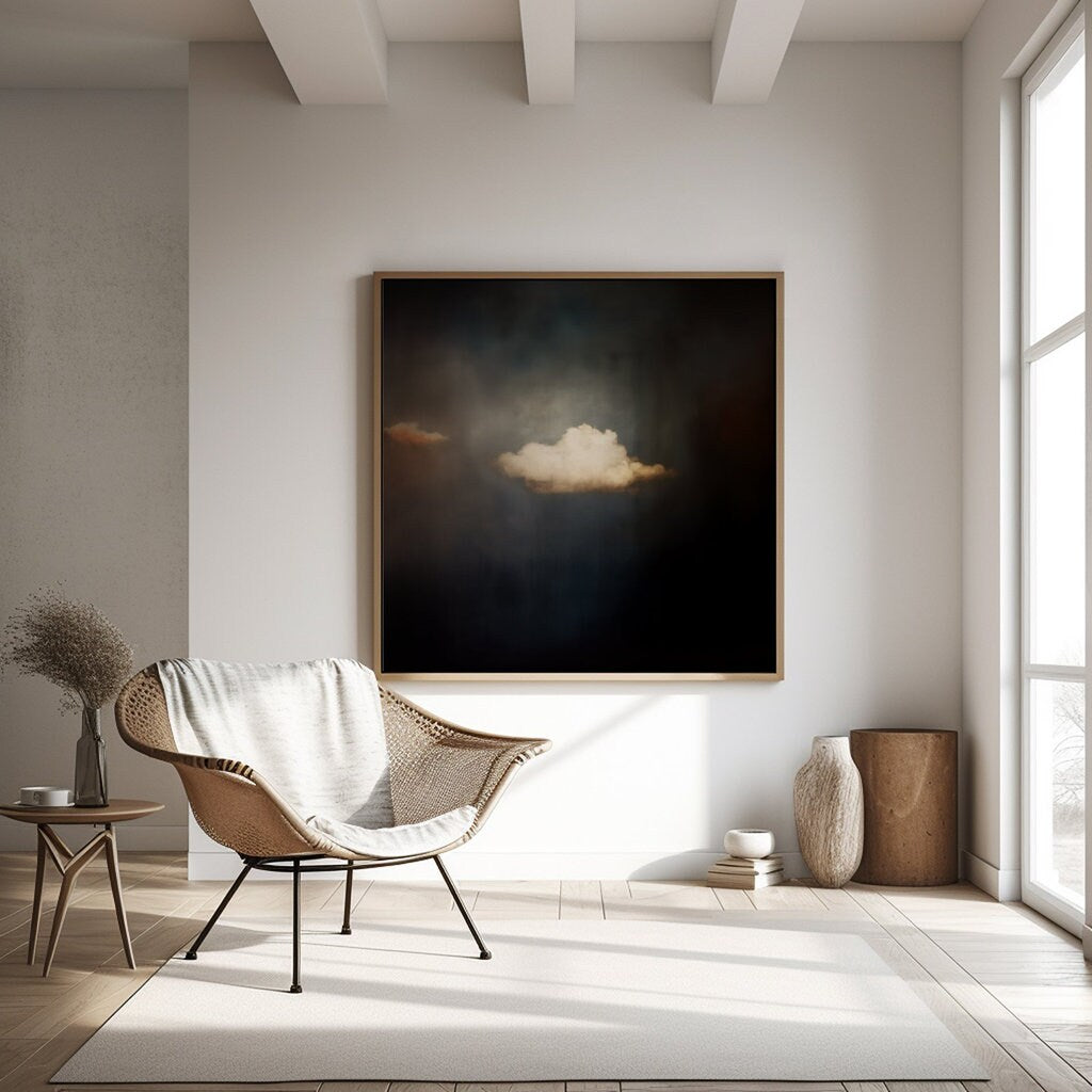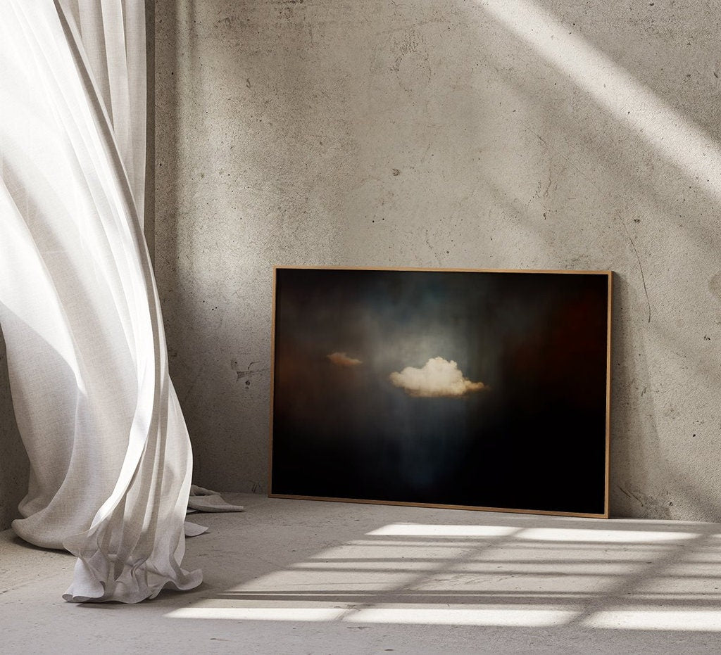 Find a sanctuary of peace in the ever-changing sky with โ€˜The Contemplative Sky,โ€™ a captivating minimalist artwork that celebrates the quiet beauty of a moody, vintage cloudscape. This piece is a portal to a world of serene contemplation, where clouds drift in a tranquil atmosphere. Cherished by our collectors for its "calming, meditative quality" and "timeless, understated elegance," this artwork is a tribute to the enduring beauty of the heavens and the peace found in gazing into them.