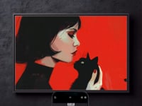 A Living Moment: Your artwork includes a unique QR code. When scanned, the cat's eyes might slowly blink or the woman's expression may subtly shift, bringing this captivating, interactive moment of introspection to life.
